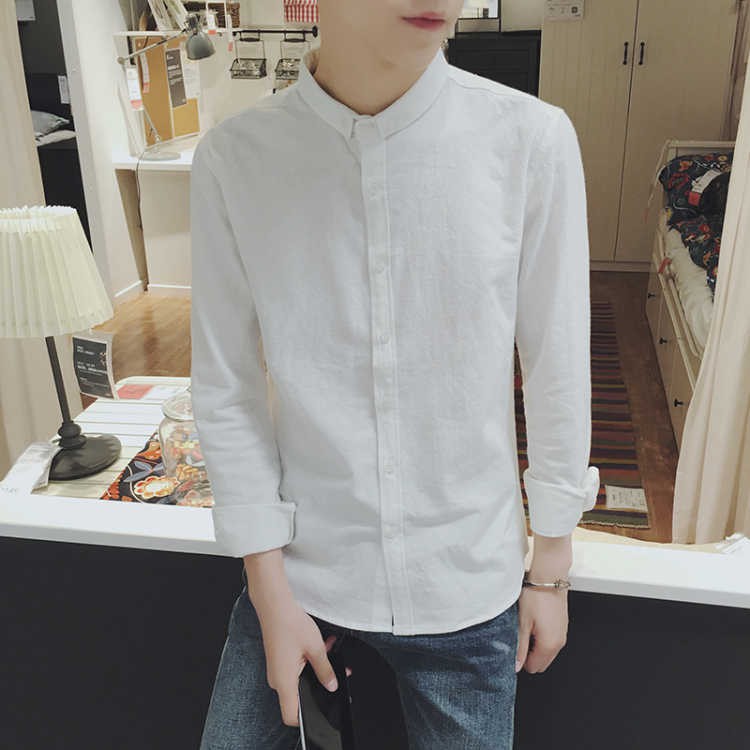 Kain Kapas Dan Lengan Baju Lelaki Lengan Panjang Ramping Bahagian Belia Jepun Kasual Putih Kecil Kemeja Kemeja Baru Baju Shopee Malaysia