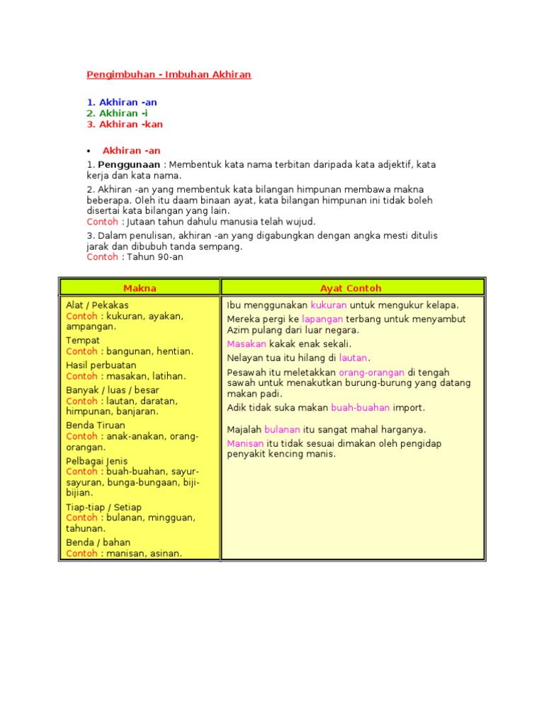 Kamus Dewan Edisi Keempat Tatabahasa Dewan Edisi Ketiga Imbuhan merupakan satu bentuk kata yang amat penting dalam bahasa Melayu. Contoh penggunaan dalam ayat. -an -kan dan -i3.